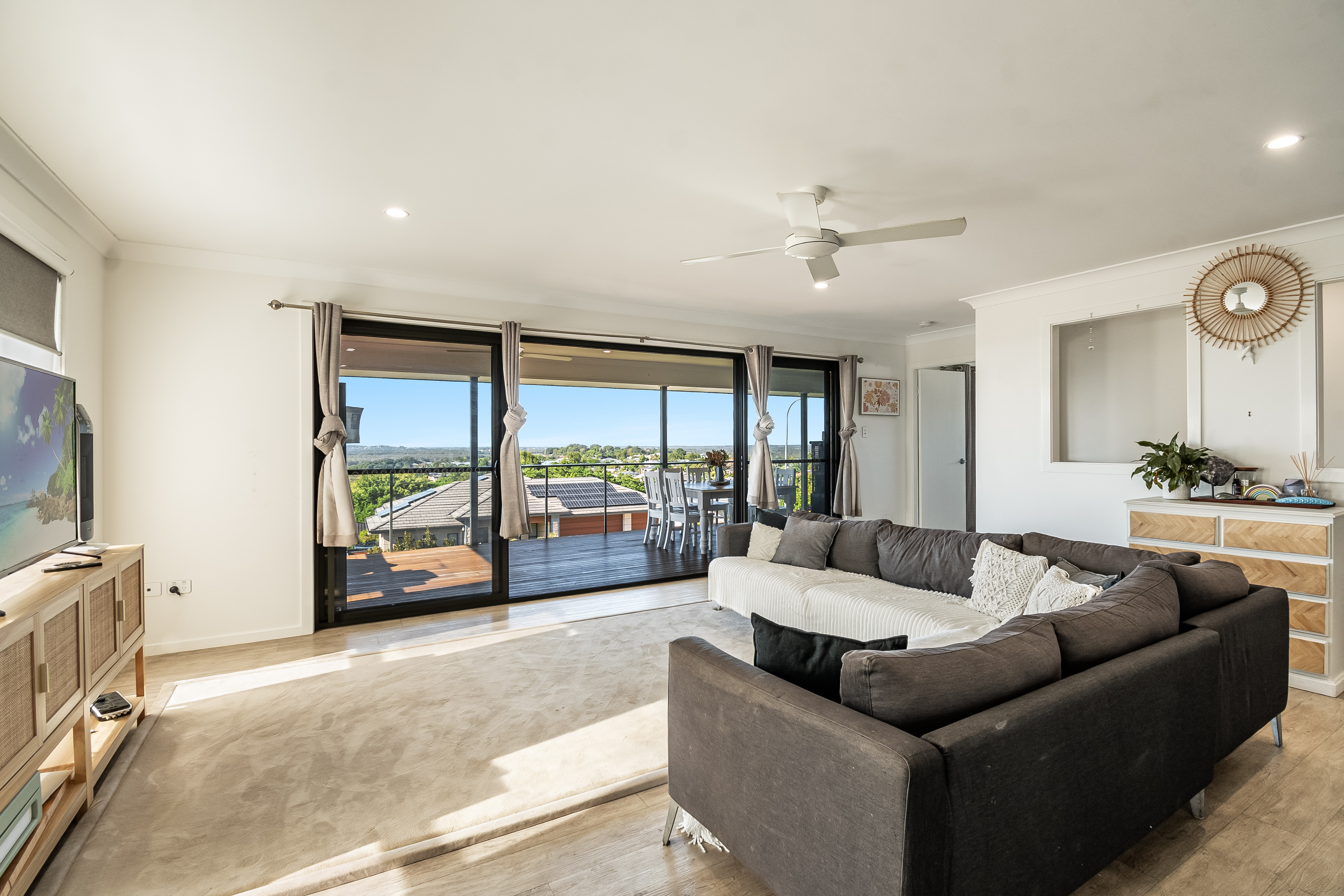 Need some extra space? This expansive family residence features 5 spacious bedrooms and 3 elegantly designed bathrooms, ensuring ample room for everyone. The open-plan living and dining area flows effortlessly onto a large entertaining deck, ideal for hosting gatherings or soaking in the elevated views all the way to the ocean.