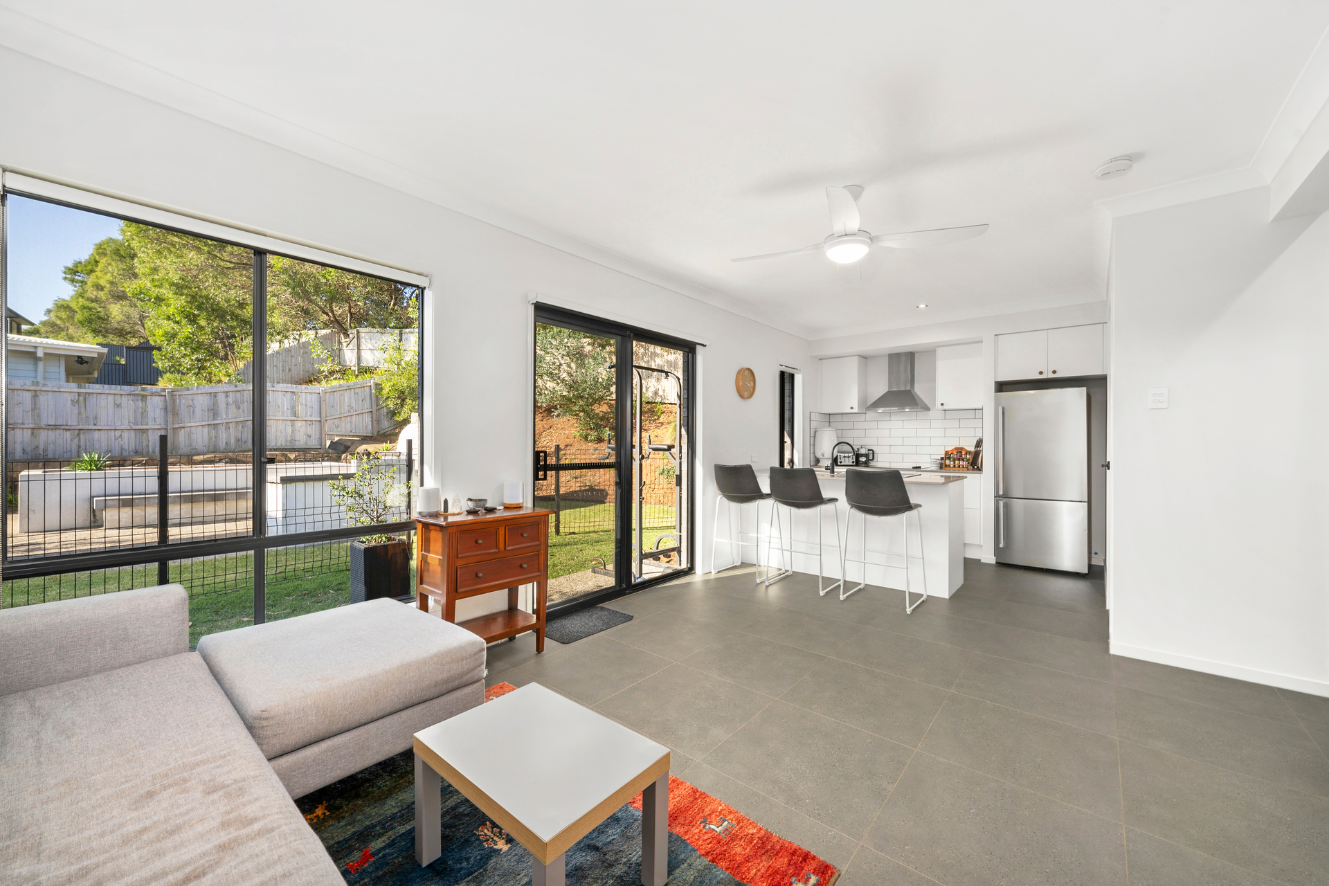 - Relaxed, open plan living and dining flows effortlessly to the alfresco terrace - Four upper-level bedrooms with built-in robes, ensuited master with WIR - Additional lower level fifth bedroom with ensuite ideal as a guest retreat - Contemporary kitchen with island seating, dishwasher, induction cooktop - Thoughtfully reimagined alfresco entertaining space with stone pizza oven - Modern main bathroom with tub, additional powder room on each level - Meticulous landscaping, fully-fenced yard spaces ideal for pets and kids - Separate two bedroom fully self-contained granny flat ideal as AirBNB - 10 mins to Ballina's schools, shops and restaurants with easy M1 access - 14 mins to Lighthouse Beach, Ballina Head, parklands, 10 mins to airport