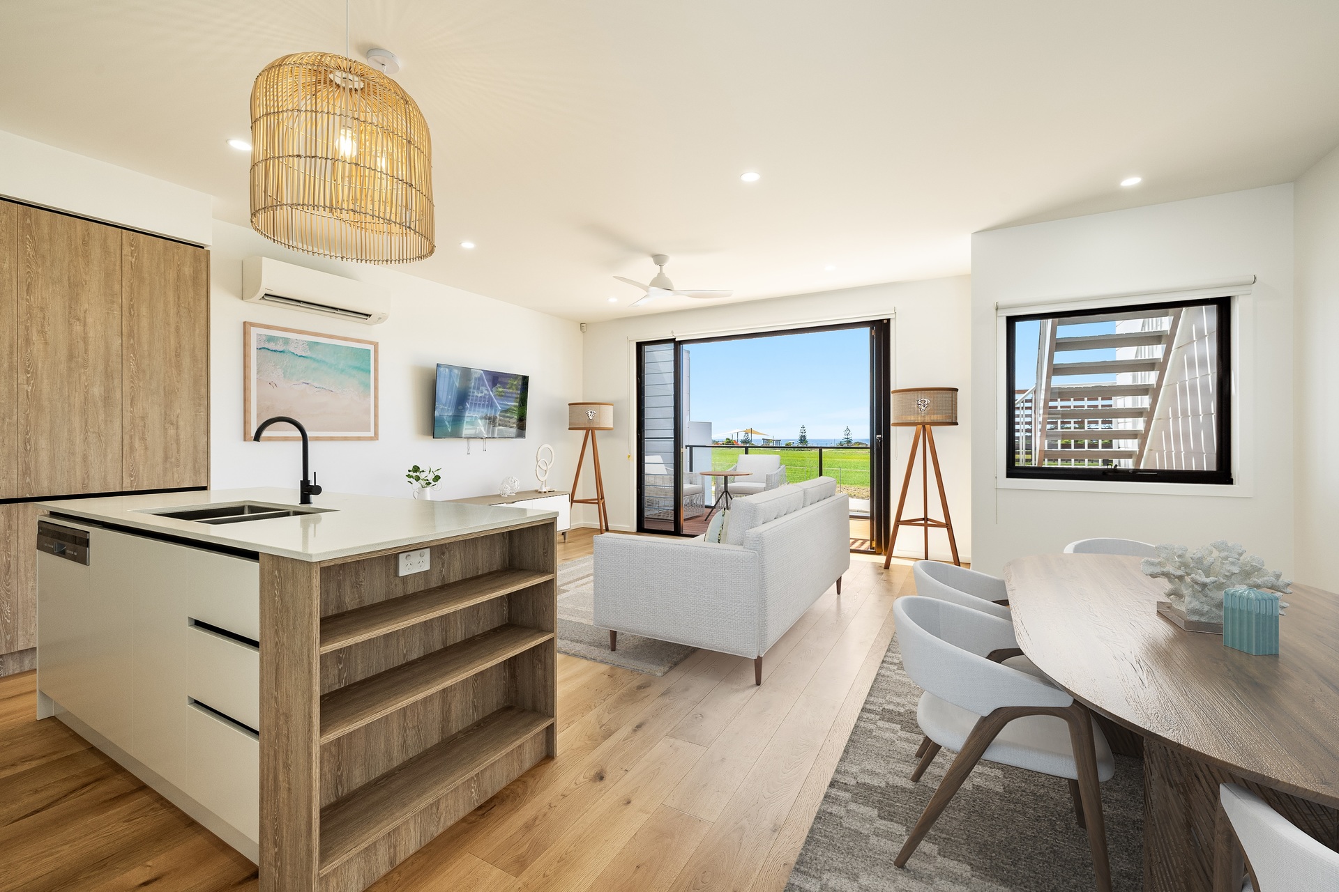 - Stroll to the beach, walk along the headland or enjoy a choice of local parks - Brand new three bedroom residence with a sun-drenched easterly aspect - Superb rooftop deck, ideal for checking the surf or evening drinks with friends - Main living level features an open plan design flowing to a spacious balcony - Well-appointed contemporary kitchen with dishwasher, stone island bench - A stylish powder room plus a queen-sized bedroom complete the level - Ground floor offers a large master with ensuite and rear patio access - Modern main bathroom plus a third bedroom opening to a patio and garden - Air-conditioning, fans, internal laundry, good storage plus double garage - Close to a network of scenic walking/cycle trails, 7 mins to Lennox Head
